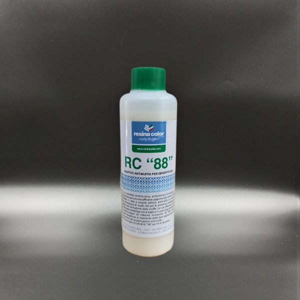 RC 88 ADDITIVO ANTIMUFFA PER IDROPITTURA è un prodotto antimicotico, antibatterico, composto in forma molto concentrata, che viene aggiunto alle comuni idropitture trasformandole in vere e proprie pitture antimuffa. RC 88 conferisce alle pitture un’elevata resistenza e le rende adatte alla verniciatura di locali che per la presenza di elevata umidità sono soggetti alla formazione di muffe